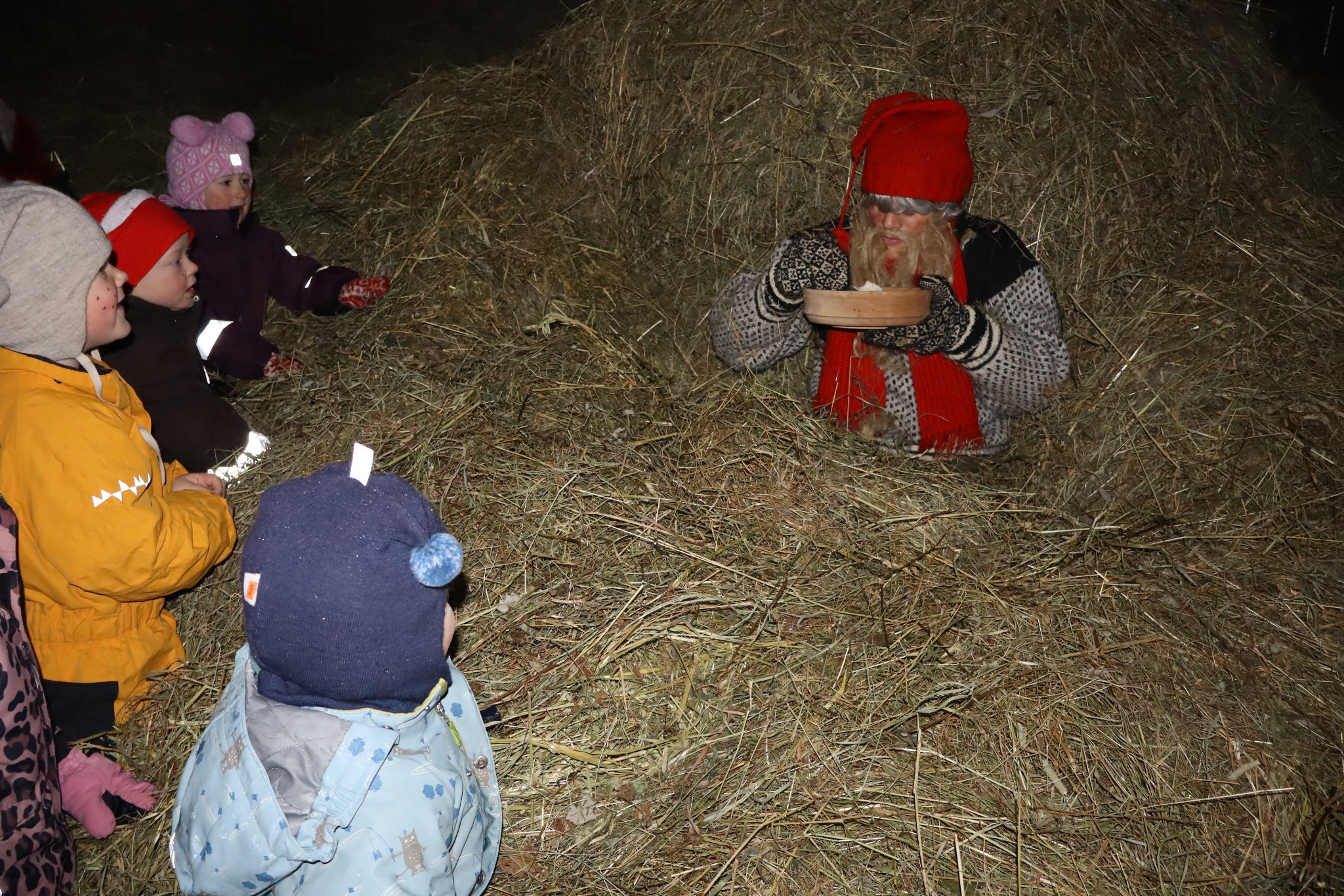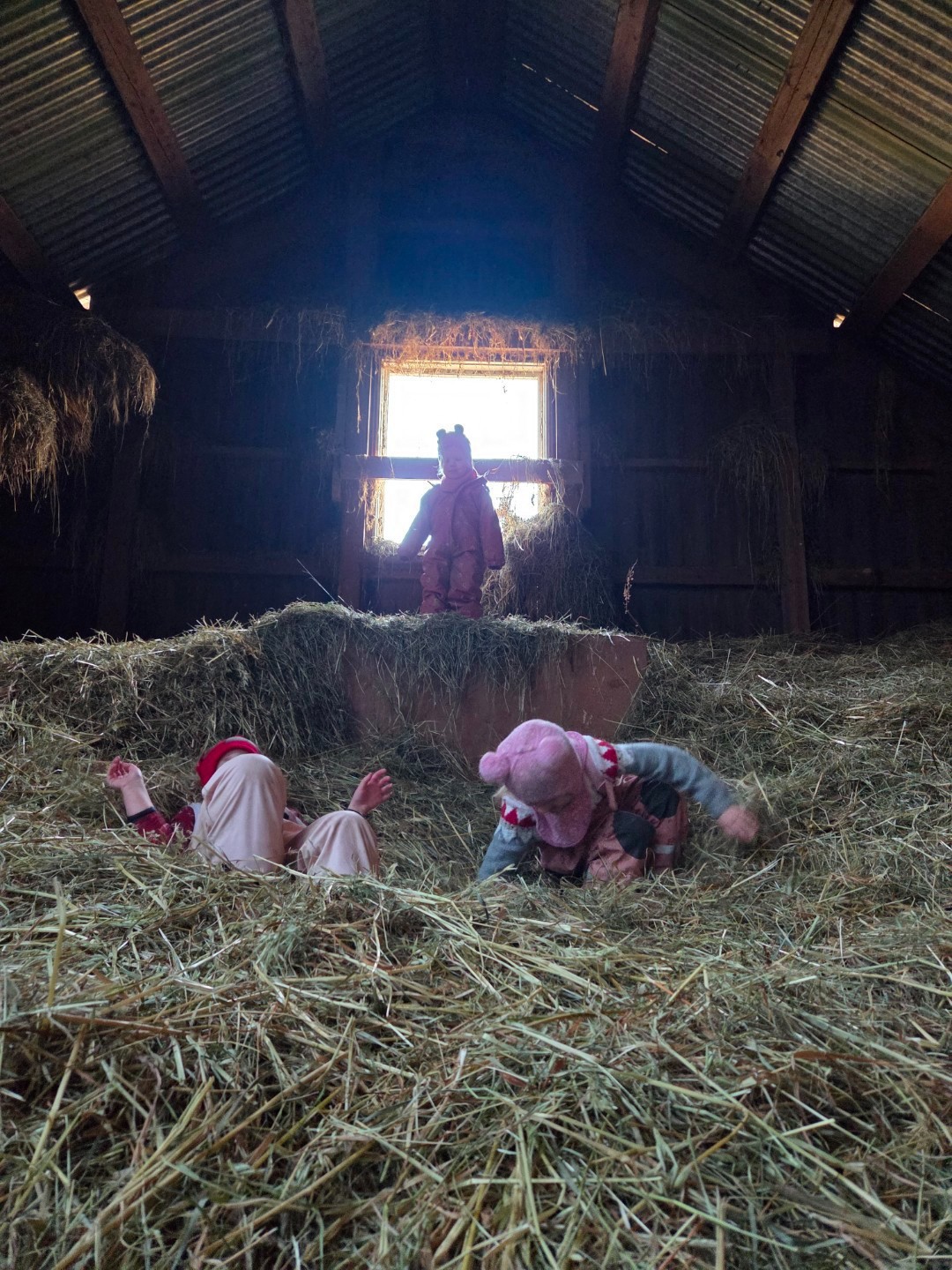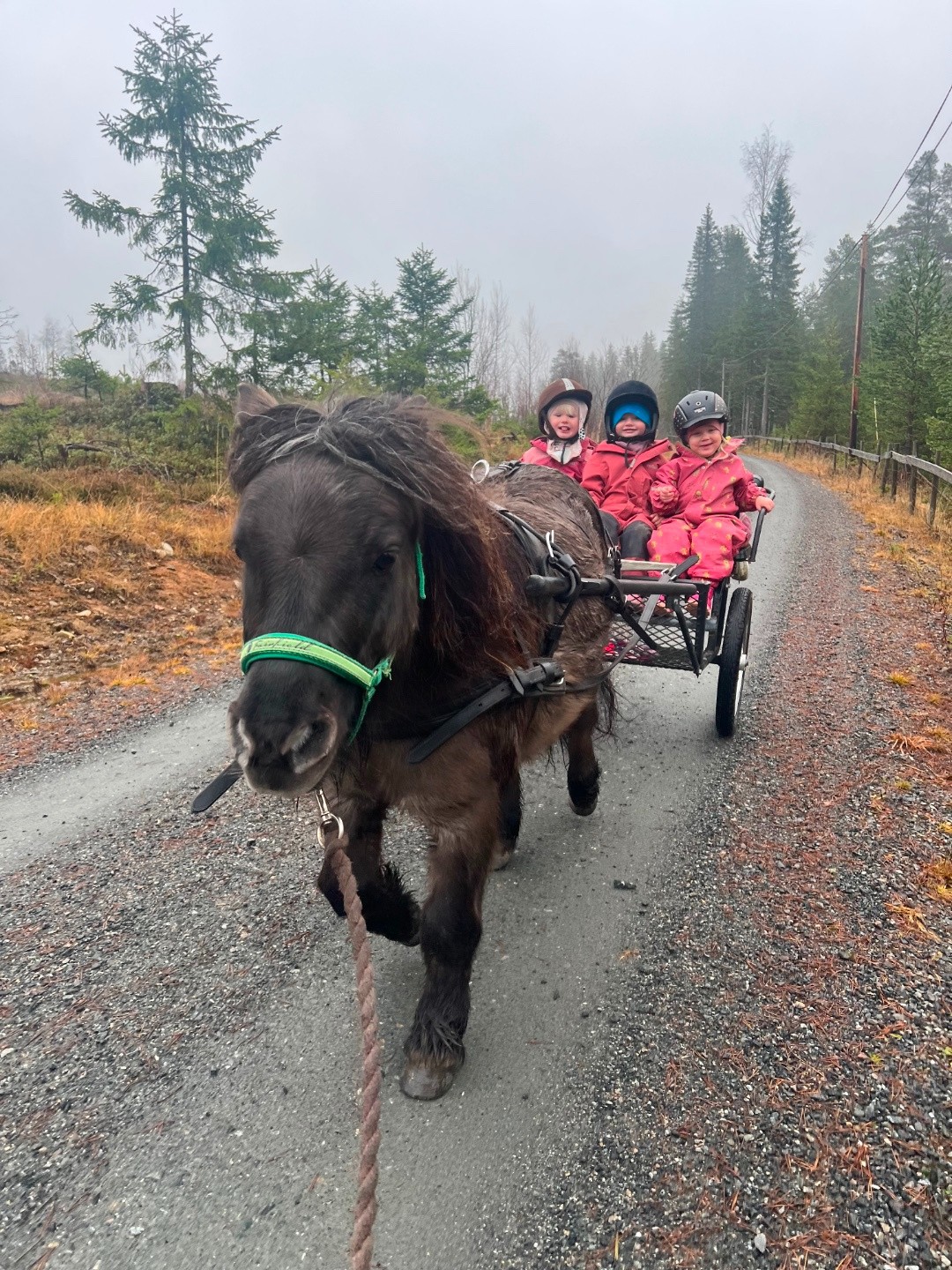 Barnehagen ligger på tunet av en gård, og i fjøset har vi ulike dyr som vi steller og koser med. På gården har vi 4 hester, 7 høner, 11 kyllinger, 4 geiter og 5 sauer med deres lamunger. Vi følger livet på gården og deltar i ulike arbeidsoppgaver gjennom året.
