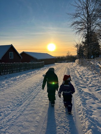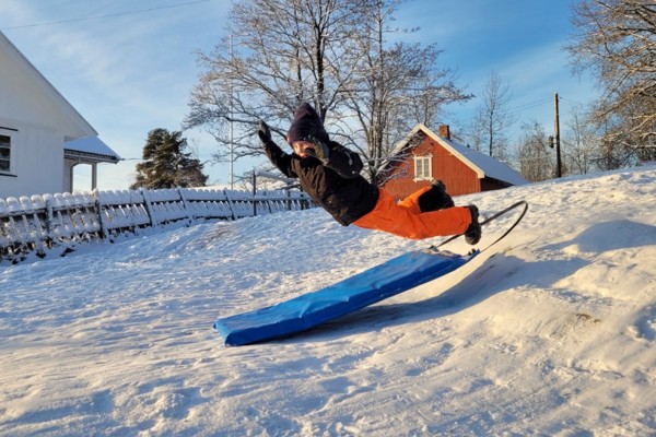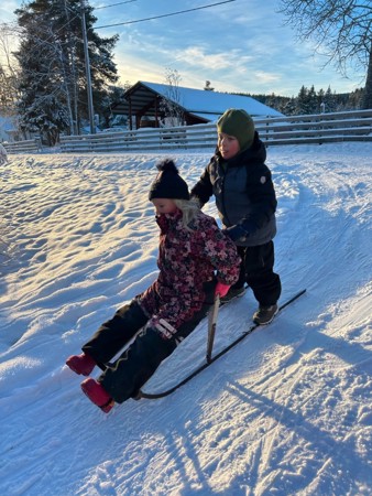 Ellers er vi så heldige at vi har fått litt snø, og dagene går mye til aking og sparkkjøring! Her får barna utfordret seg selv og testet egne grenser- dette er god risikolek!