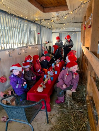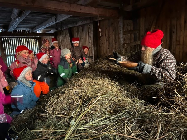 Tradisjonen tro har vi også hatt nissefest. Barna klatrer spent opp på høyloftet for å se om Fjøsnissen er der. Vi sang "på låven sitter nissen" og serverte han nissegrøt. Da ble han glad og fornøyd!