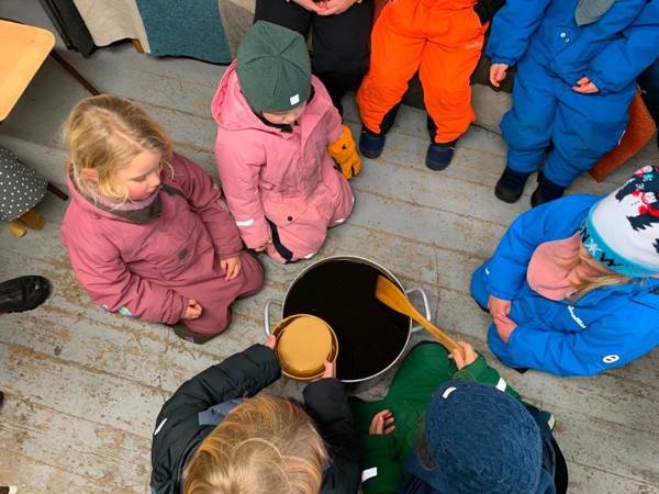 Vi har også brygget eget juleøl (barnevennlig, vel å merke :) ). Spennende å følge prosessen fra å blant annet koke einer til å tappe det ferdige ølet på flasker. Det blir spennende å smake dette på julebordet!