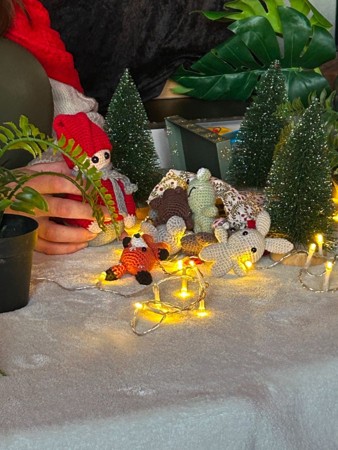 De eldste barna har vært på førjulsgudstjeneste i kirka og vi har bakt pepperkaker og lussekatter. På luciadagen skal vi gå på besøk til naboer her oppi Åsen, synge luciasangen og dele ut lussekatter. Siste uka har vi også julebord for alle i barnehagen. Da dekker vi bordet med ekte servise og glass, finstasen er på og vi spiser ribbe, pølse og medisterkaker med tilbehør. Ekte julebord!
