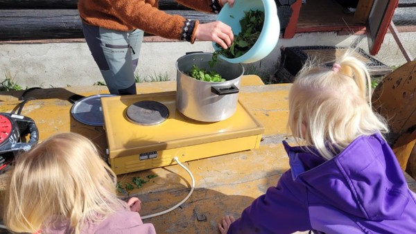 På turer i skog og mark, er det også stadig vekk nye ting å oppdage, og vi lærer om nyttevekster i naturen som vi kan spise
