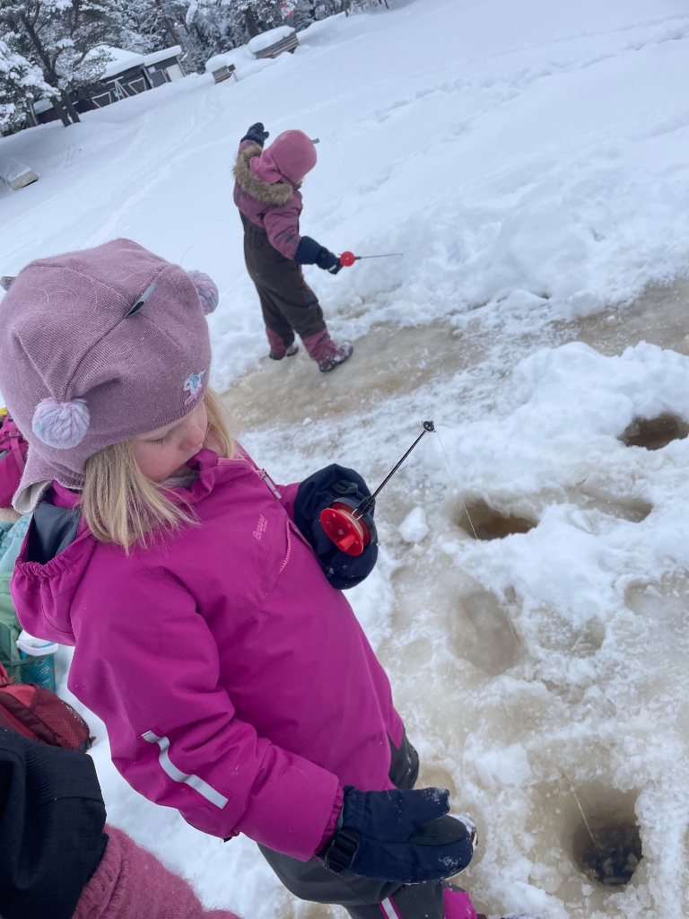 De to eldste gruppene reiste til Skumsjøen for å pilke. I forbindelse med at vi jobber med urfolket og samenes nasjonaldag. Dessverre ble det ikke noe fisk, men mye lærdom og fellesskap. 🎣
