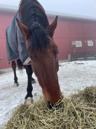 Vi har fem hester på gården; Odin, Røynar, Jara, Doffen og Sankus.